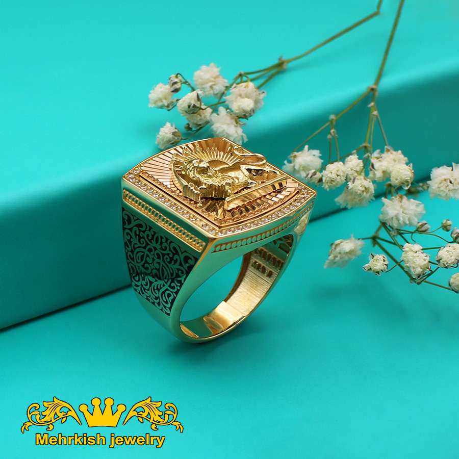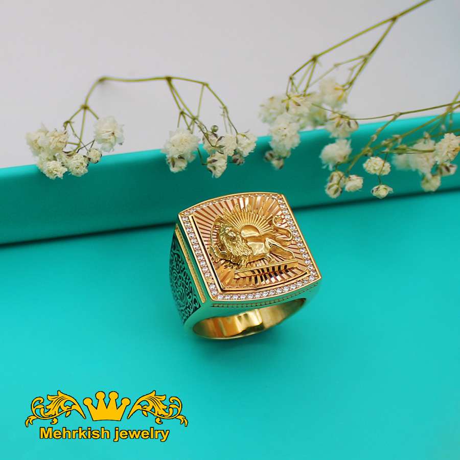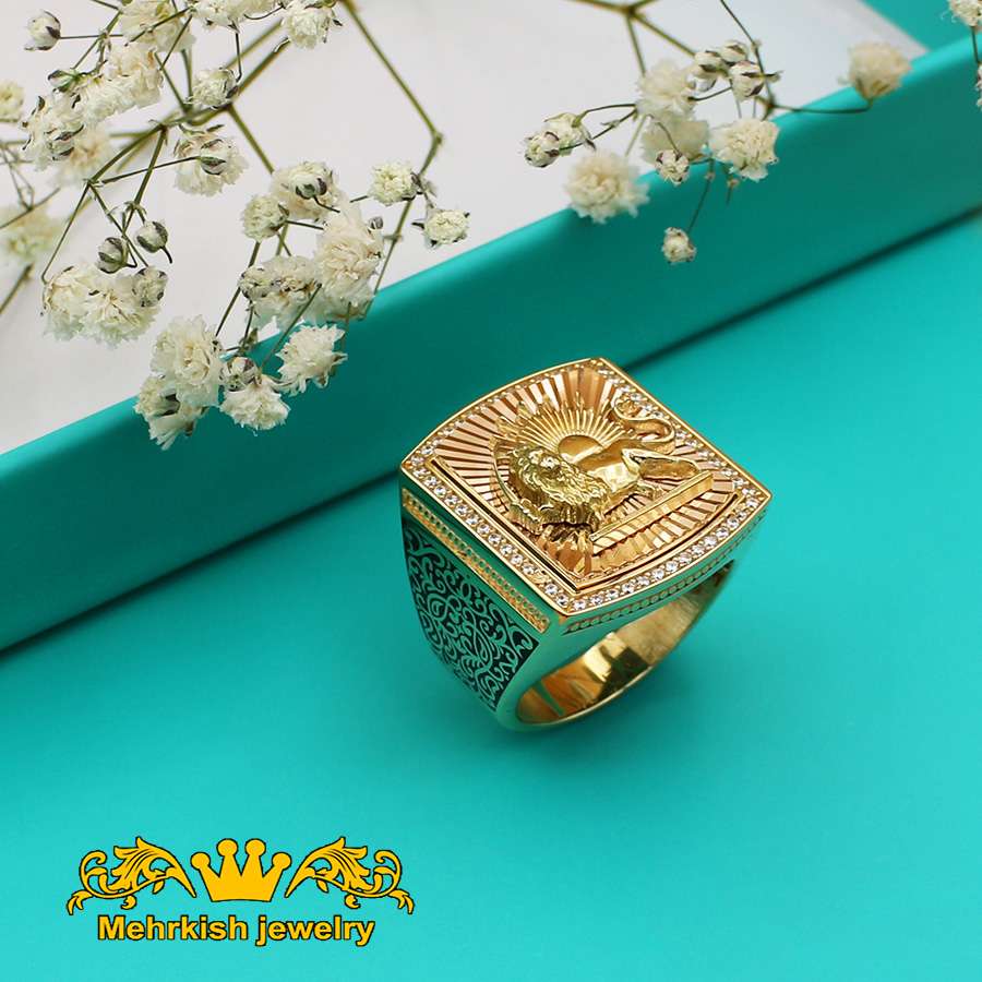 انگشتر مردانه شیر و خورشید طلا ۱۸ عیار کد 7219
