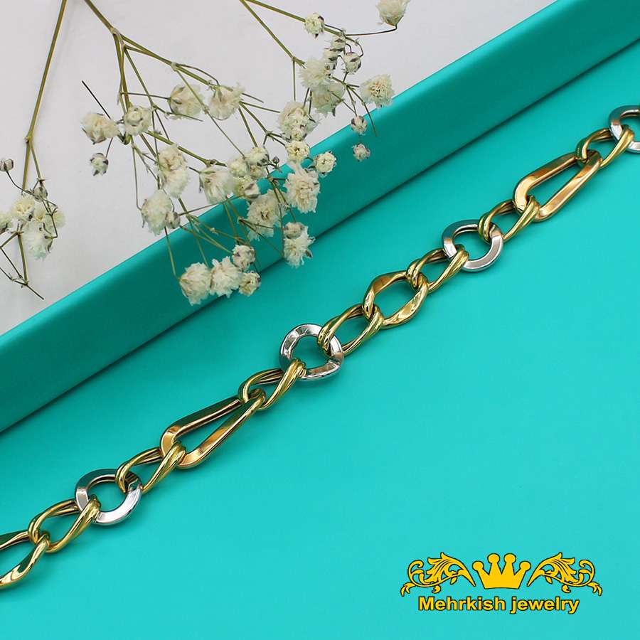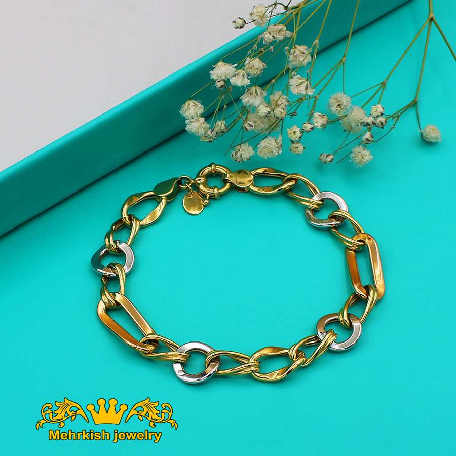 دستبند زنجیری آریانا دو رنگ ۱۸ عیار کد 7133
