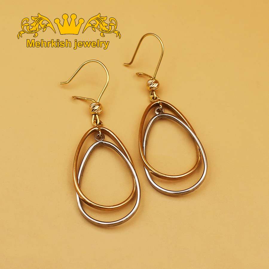 گوشواره آویز شیک دو رنگ ۱۸ عیار کد B-756