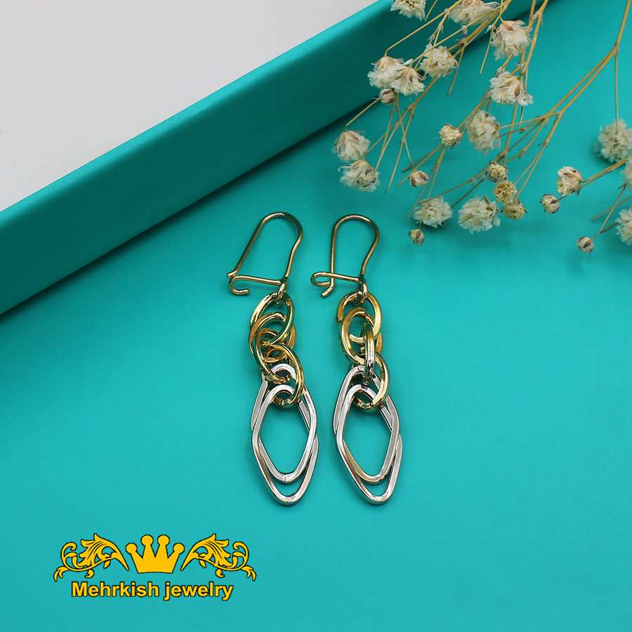 گوشواره آویز طرح دو رنگ (زرد و سفید) کد B-1067