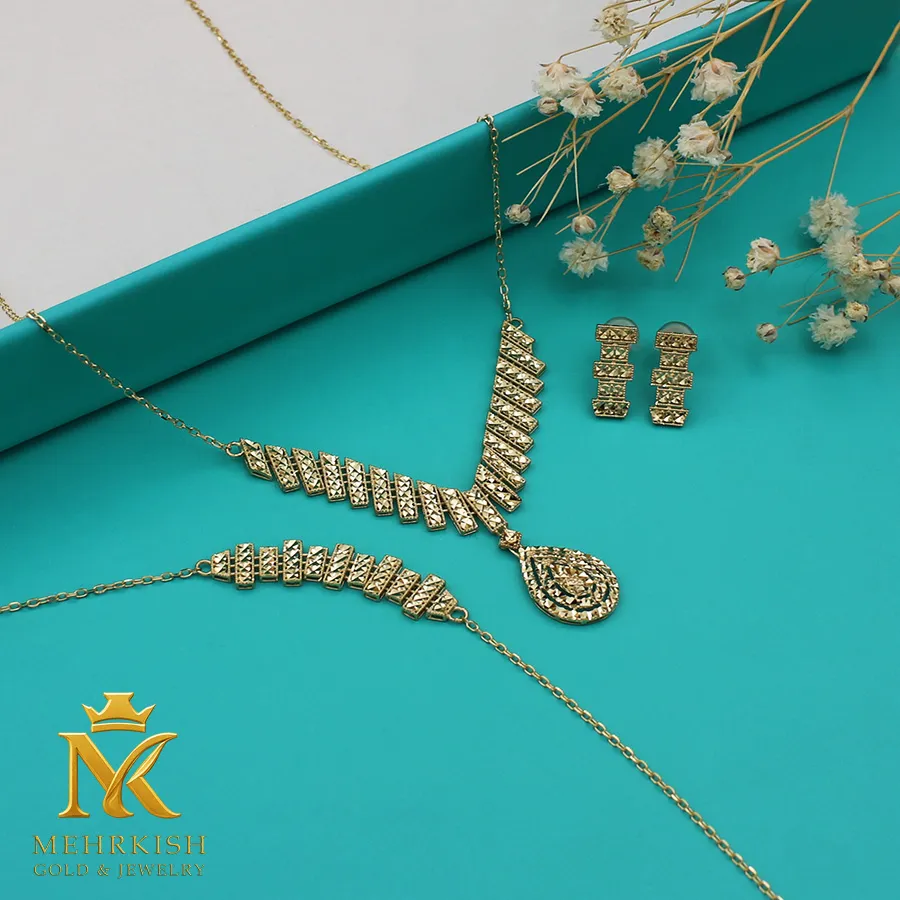 سرویس تراش طلا ترمه با طراحی شیک و منحصر به فرد، انتخابی عالی برای کسانی است که به دنبال زیورآلات لوکس و خاص هستند. این سرویس با طراحی دقیق و تراشهای ظریف خود، ظاهری جذاب و مدرن به استایل شما میبخشد. ساخته شده از طلای با کیفیت و مناسب برای استفاده در مراسمها و مهمانیهای ویژه، این سرویس میتواند به راحتی با سایر جواهرات ترکیب شود.