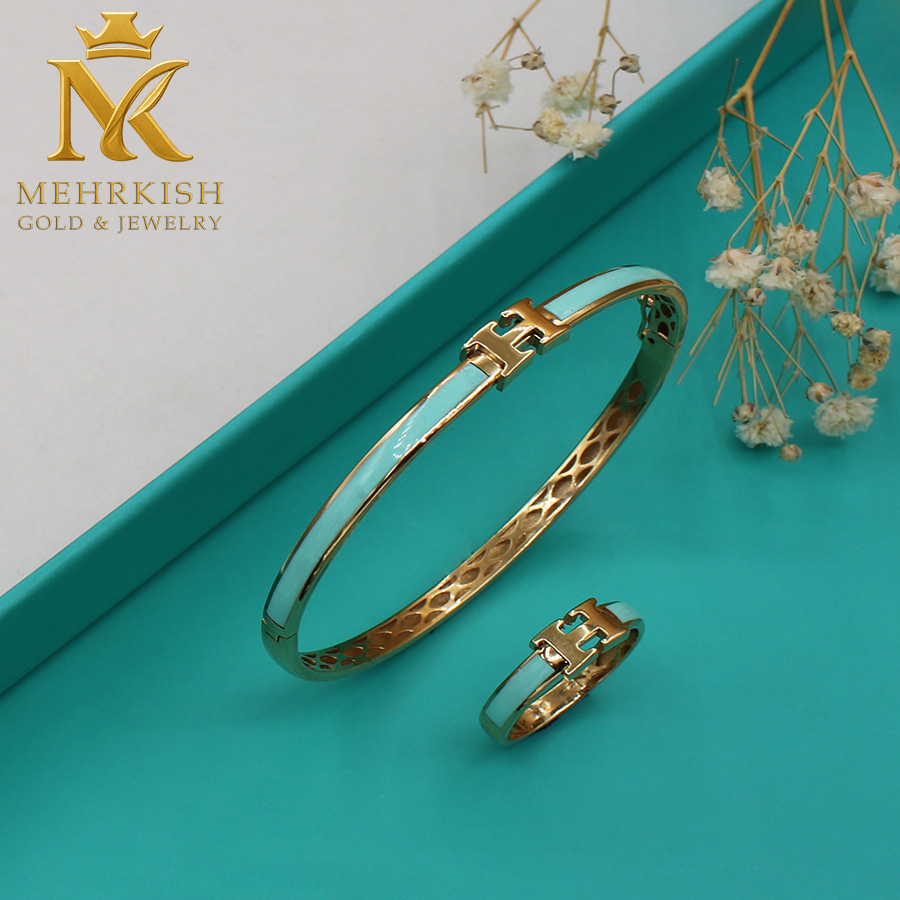 ست دستبند و انگشتر هرمس با ترکیب رنگ زرد و آبی کد B-1116
